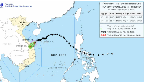 Từ rạng sáng nay, mưa lớn bắt đầu gia tăng ở khu vực từ Hà Tĩnh đến Đà Nẵng. Theo số liệu quan trắc, lượng mưa trong 7 giờ qua phổ biến 40–70 mm. Dự báo, từ hôm nay 23-10 đến hết ngày mai 24-10, khu vực từ Hà Tĩnh đến Quảng Ngãi tiếp tục có mưa to đến rất to, lượng mưa trung bình 100–200 mm, có nơi vượt 300 mm.