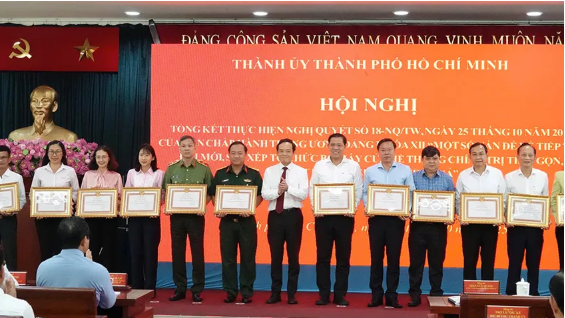 Tại hội nghị, Ban Thường vụ Thành ủy TP.HCM đã khen thưởng 66 tập thể và 104 cá nhân có thành tích xuất sắc trong triển khai Nghị quyết 18 của Trung ương.