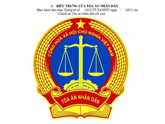 Theo dự thảo, biểu trưng của TAND Việt Nam có hình tròn, trung tâm là “Cán cân công lý” và “Thanh kiếm” màu vàng trên nền xanh hòa bình, bao quanh là vòng tròn đỏ với ngôi sao vàng phía trên và hai bông lúa hai bên. Phía dưới là nửa bánh răng, trên nền quyển sách mở cùng dải cờ đỏ mang dòng chữ “TÒA ÁN NHÂN DÂN”.