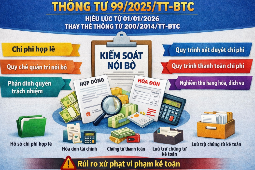 Tóm lại, Thông tư 99/2025/TT-BTC không chỉ thay đổi chuẩn mực và chế độ kế toán, mà còn gián tiếp buộc doanh nghiệp phải nâng cấp tư duy quản trị chi phí và kiểm soát nội bộ. Doanh nghiệp nào chủ động xây dựng quy trình rõ ràng, minh bạch, có kiểm soát và lưu trữ hồ sơ đầy đủ sẽ giảm thiểu đáng kể rủi ro pháp lý, đồng thời tạo nền tảng quản trị tài chính bền vững trong giai đoạn mới.